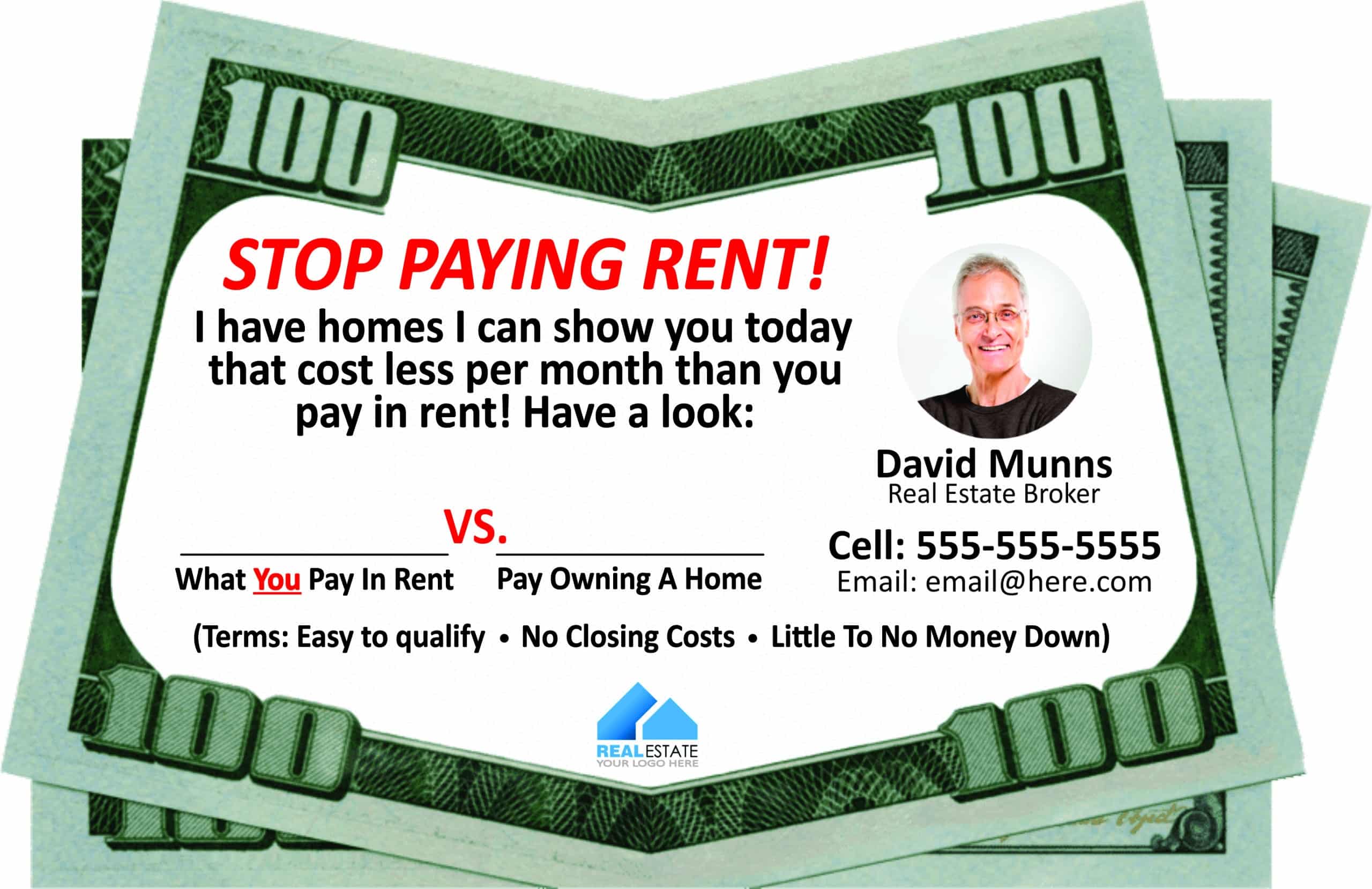 BILL-BOARD® drop cards aren’t meant to represent actual money; they’re carriers for your message. The $100 bill delivers the most powerful impact and ensures your card is kept, remembered, and shared.